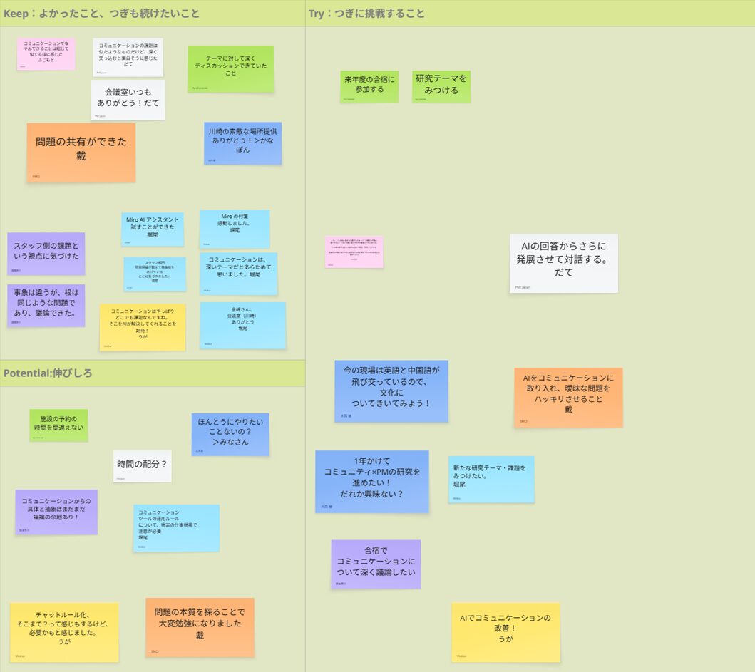 コミュニケーションスキルは、今の時代に最も大切なスキルです。AI時代にコミュニケーションスキルが大事になってきます!今回は、コミュニケーションについて、今までのプロジェクトで困った事例やよかった事例などを話し合いました。どんどんコミュニケーションの本質がつかめてくるようになりました。