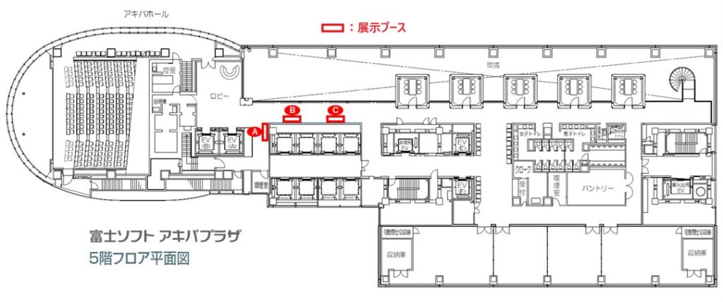 アキバホール(5F)でのメイン講演のお昼休み時間(12:15~13:15)に、セミナールーム(6F)で行われるセミナーです。時間は12:25~13:05の40分間です。講演内容は自由で貴社の宣伝活動にご活用ください。