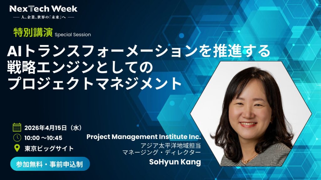 PMI(Project Management Institute)アジア太平洋地域担当 マネージング・ディレクターSoHyun KangがNexTech Week Tokyoにて特別講演を行います。