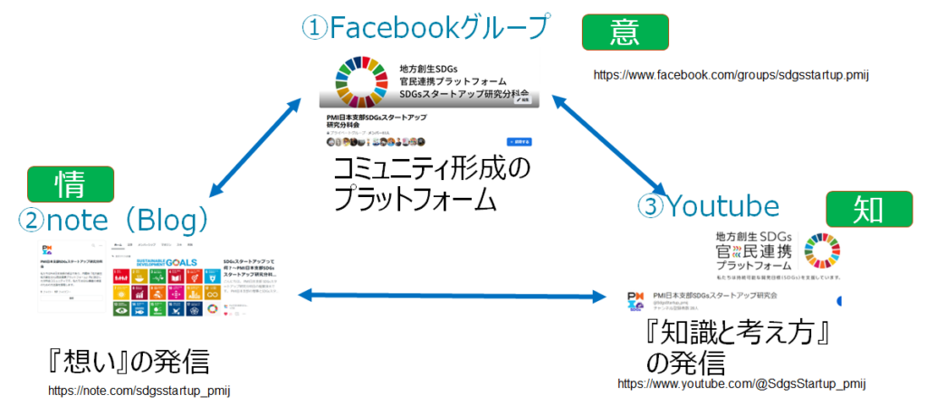 私たちは「知・情・意」をテーマにFacebookグループ、note、YouTubeのSNS発信を行っています。